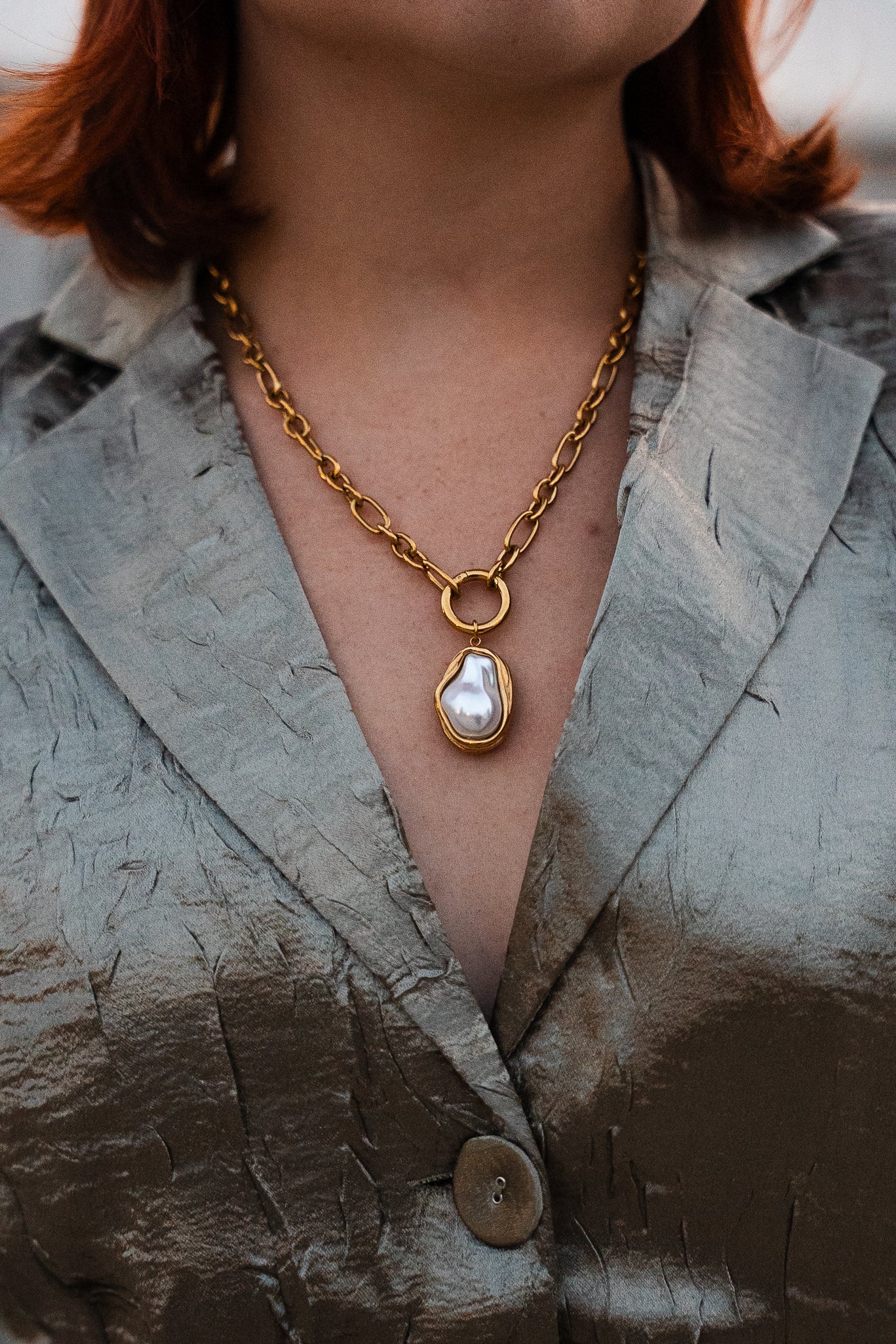 gold thicker necklace chain // not adjustable // opal stone statement // waterproof stainless steel 14k gold plated