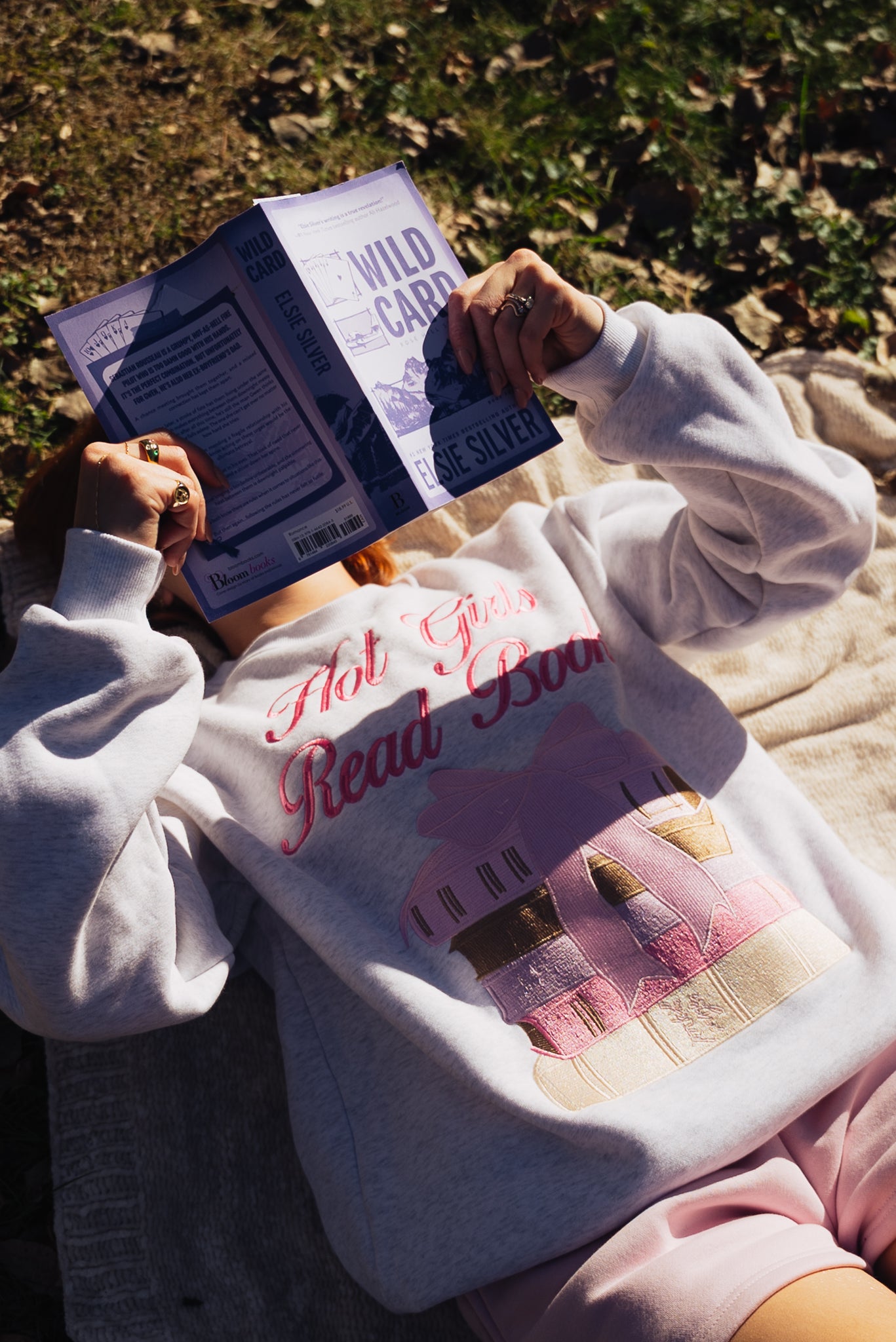 cozy reading girls are hotties // hot girls read books full embroidered crewneck // happy camp3r brand // thick, amazing quality, crew