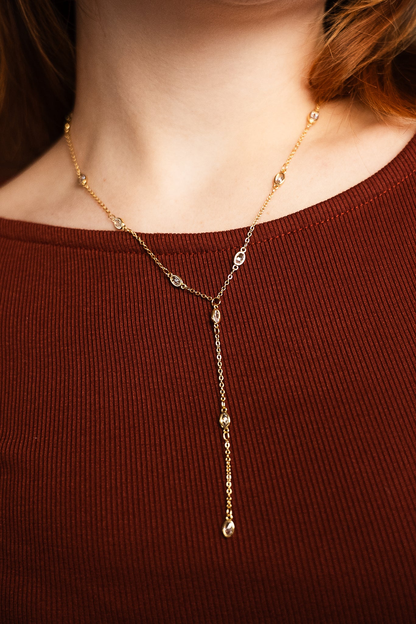 gem gold dainty necklace // stainless steel with gold plated // waterproof