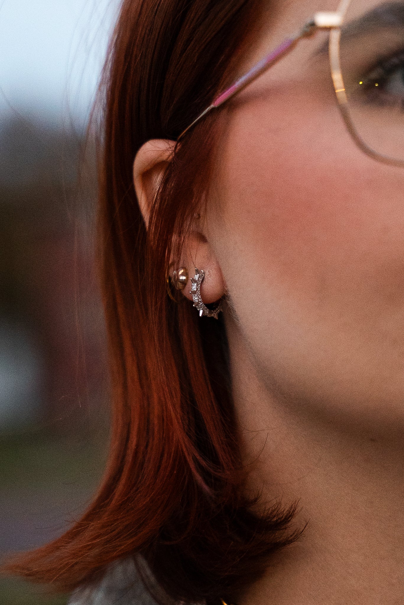 spiked gold and silver earrings // waterproof // stainless steel material & 14k gold plated // sparkle gems on the hoop